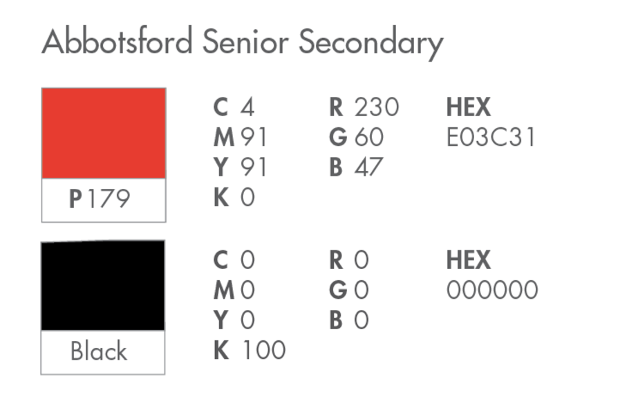 The school's official colours are used in the logo as well as various design devices and background colours. You may reference the colour information on this web page to a graphic designer, printing house, sign or clothing vendor, publication or newspaper if designing new items for your school.