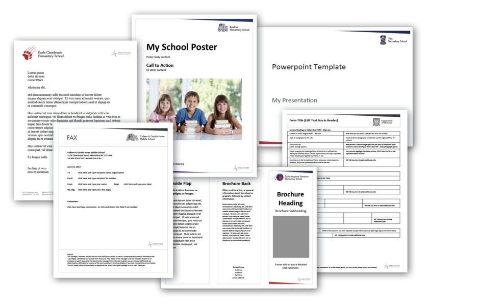 A number of Microsoft Office format templates are provided to make clear and attractive communication easy. These include: Letterhead, Fax, Agenda/Minutes, Brochure, Form, Poster, PowerPoint. These are only available to District Staff on the district's OneDrive server.